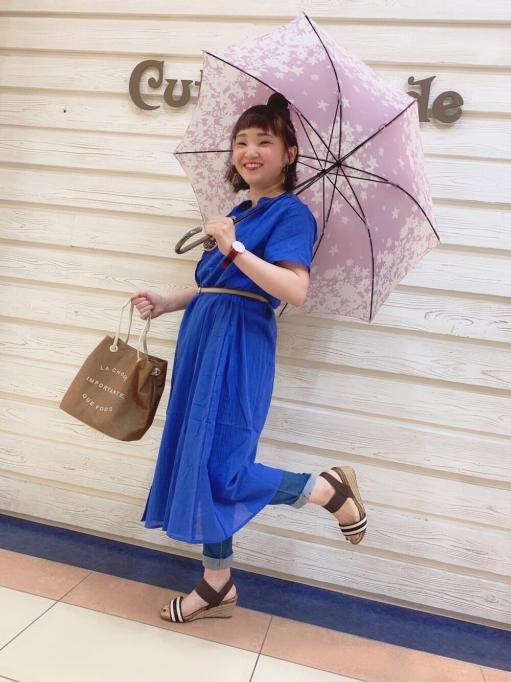 kita(SHOO・LA・RUE)の長傘「◆【晴雨兼用】長傘シルエットフラワー」を使ったコーディネート