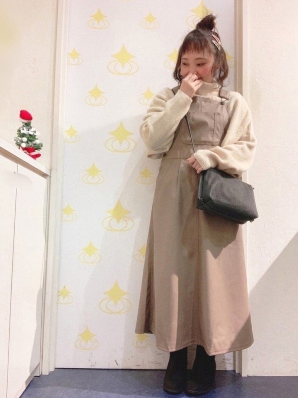いいね&お気に入り、ご覧頂きありがとうございます♡ 励みになります◡̈♥︎ モックネックニットのお袖のボリュームが大好きなニットに、レザー風ジャンパースカートでカフェオレコーデ!✨ ジャンスカはブーツで合わせたらキレイめな大人カジュアルになりますねー❤️ このジャンスカお気に入りです😊❤️ ニット、静電気くるのが気になりますが、少しの間我慢すれば落ち着きます! アウターは選んだ方が良いかも🤔 ウール系とかはバチバチきそうです💦 レザージャンスカは相性良しでしたよ! クリスマスでーす! なんだかワクワクしちゃう◡̈♥︎ 小窓にクリスマスらしいお写真撮ってみましたー! 最後までご覧頂きありがとうございます♡