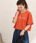kita(SHOO・LA・RUE)のTシャツ/カットソー「◆【S-L】ボーダー刺繍Tシャツ」を使ったコーディネート