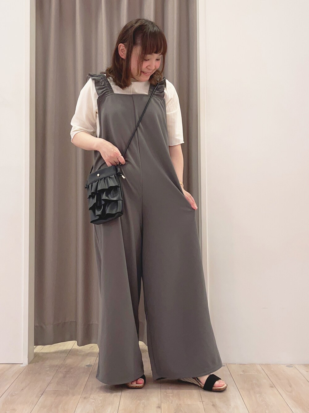 kita(SHOO・LA・RUE)のサロペット/オーバーオール「◆【体型カバーにも】大人世代も着やすい フリルショルダー サロペット」を使ったコーディネート