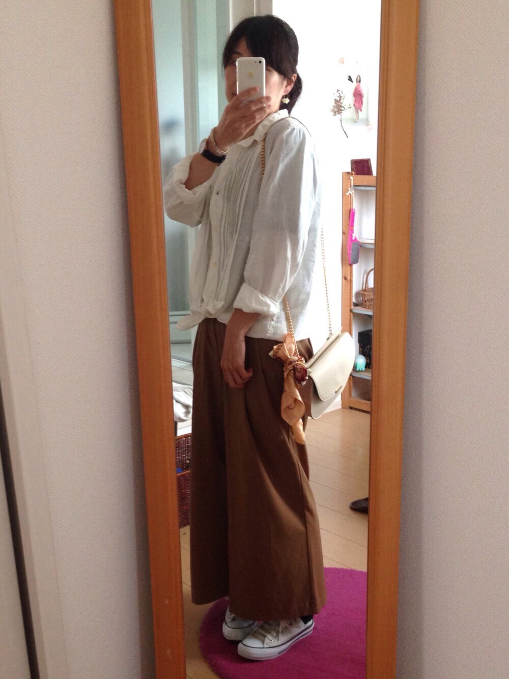 いいリネンシャツは雰囲気が出ます✨ GUワイドパンツはヘビロテ中。