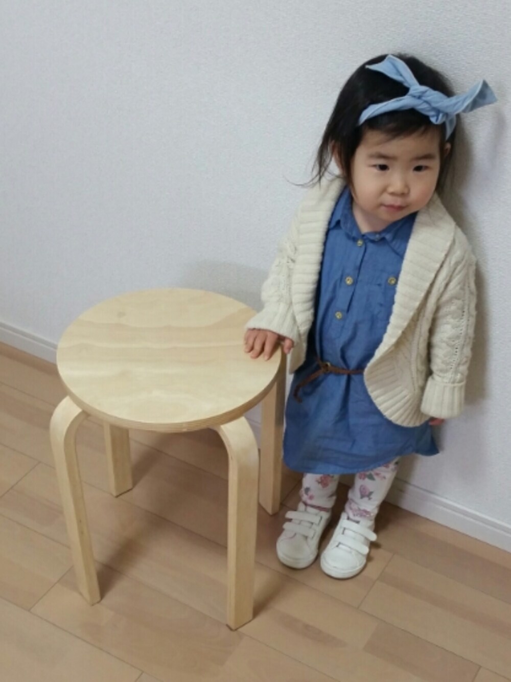 最近、ヘアアクセを少しずつ嫌がらなくなってきて、鏡で確認する姿がとても可愛い💗 今日は少し寒い日だけど、ブルーと白の春らしいコーデにしてみました☺