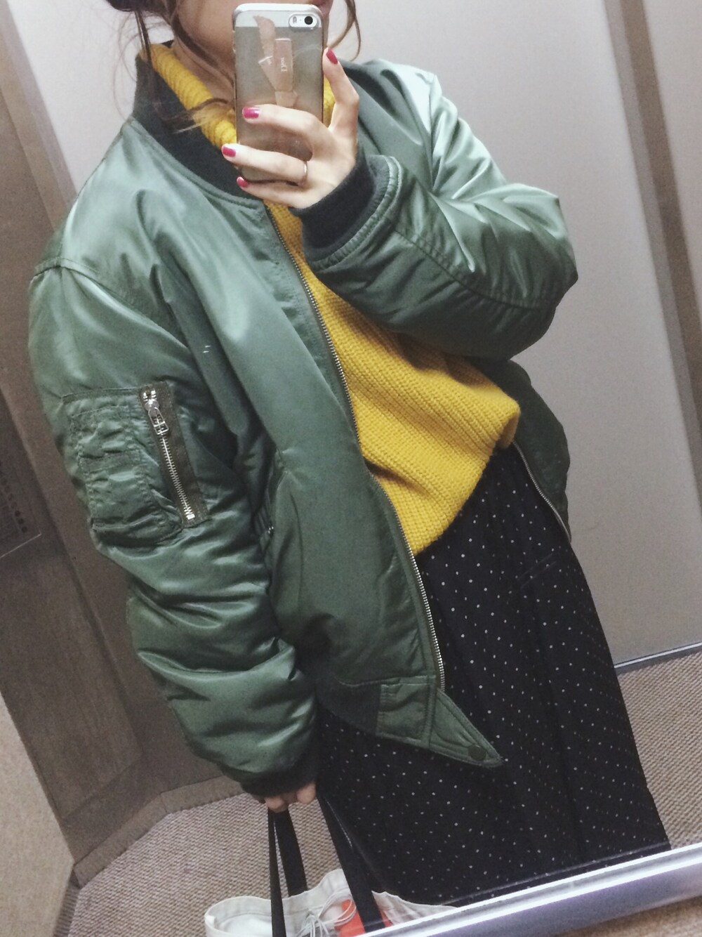 ラッキーカラーがカーキだったからMA-1にしてみました。笑 ig▷▶︎yu_kikko