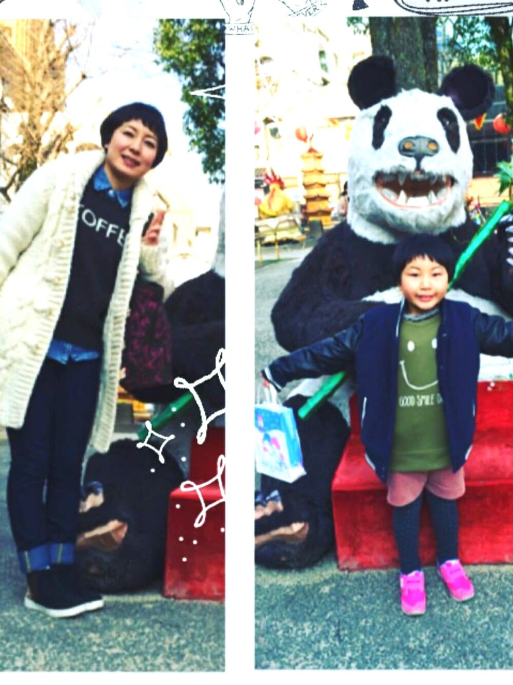 長崎ではランタンフェスティバルの準備が始まってます パンダの前で写真撮影しました