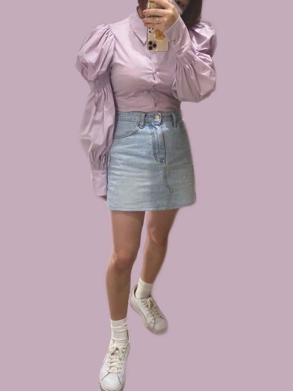 ずっと室内にいると 寒いなぁて日は 長袖のシャツとか着てます。 この二段パフ?の シルエット流行ってますよね☁️ 胴体の部分が体にフィットする ラインで作られていて 胸がある方でも お腹ぺたんこに見えます!✌︎