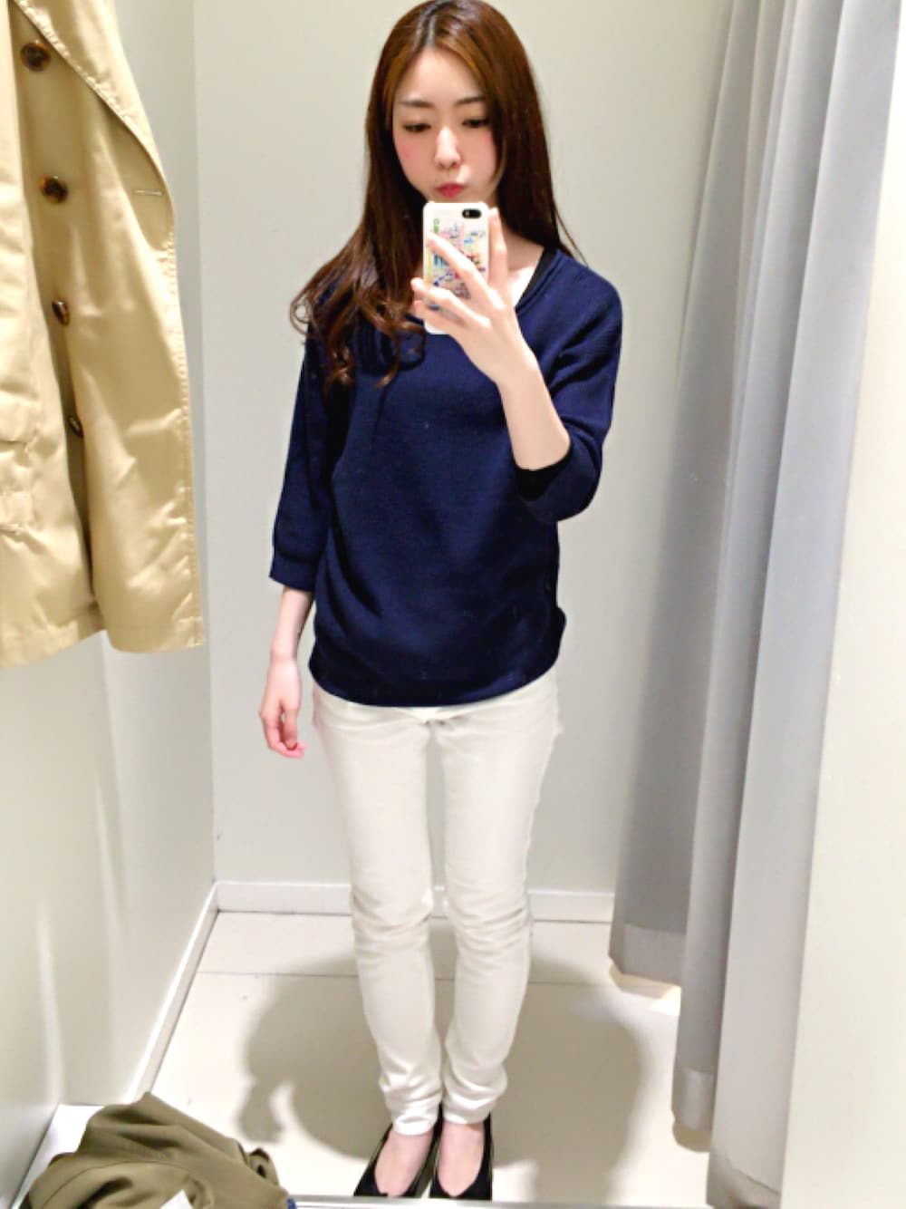 カジュアルすぎたら駄目だった為 ホワイトデニムに。👖