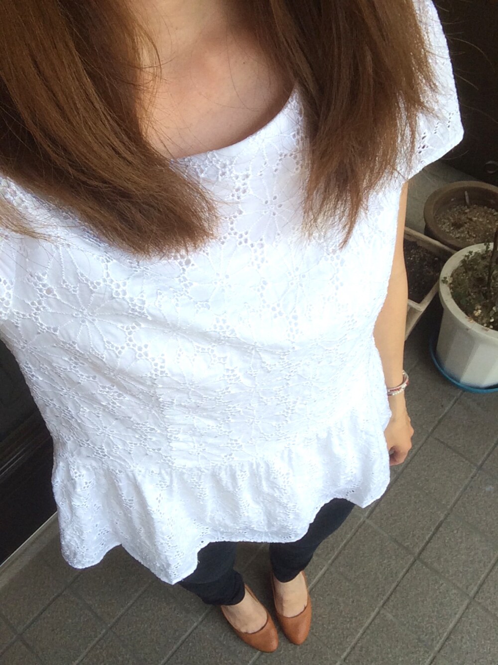 今日はご飯に連れて行ってもらうので 少しキレイめな格好で💃 久しぶりのパンプスです〜