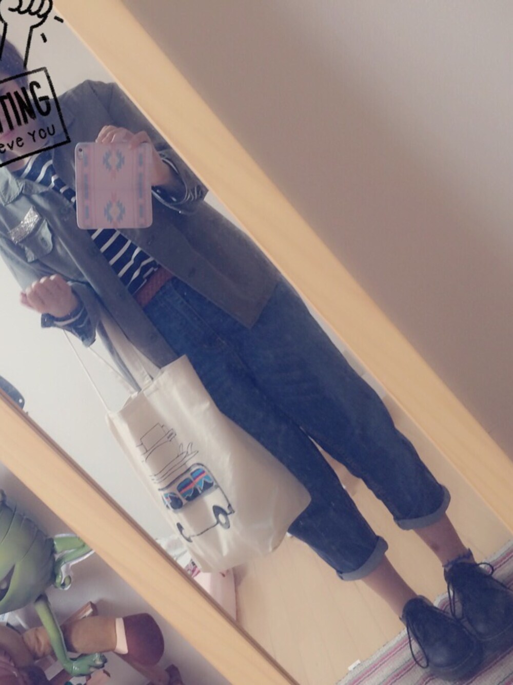 ジャケット💭earth インナー💭GU ボーイズデニム💭niko and... 靴💭マーチン トートバッグ💭patagonia