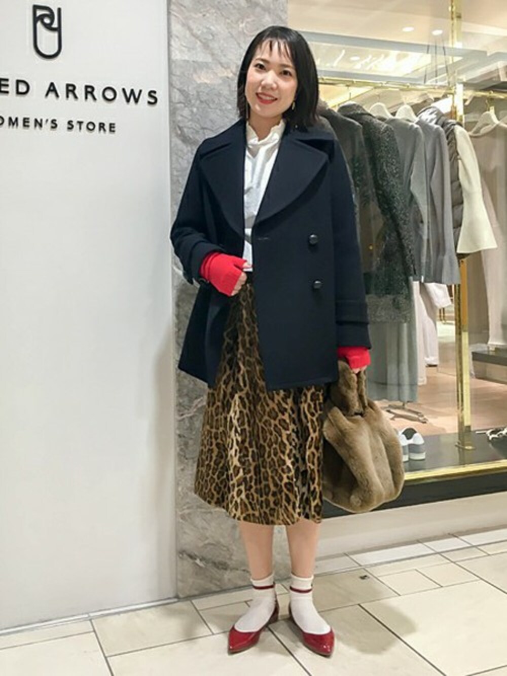 シンプルで飽きのこないベーシックなピーコートを使ったコーディネート。 シンプルなアイテムこそ自分らしい着こなしで、他の人とちょっと差がつく楽しみ方をしたいと思っています。 レオパード柄×レッドカラーはお気に入りの組み合わせ。強い色は着ているだけで、私に自信と元気を与えてくれます。 ピーコートはチェックやボーダーのトラッドな柄を合わせるのもいいですが、型を破って自分らしい個性的なコーディネートにするのもおすすめです。