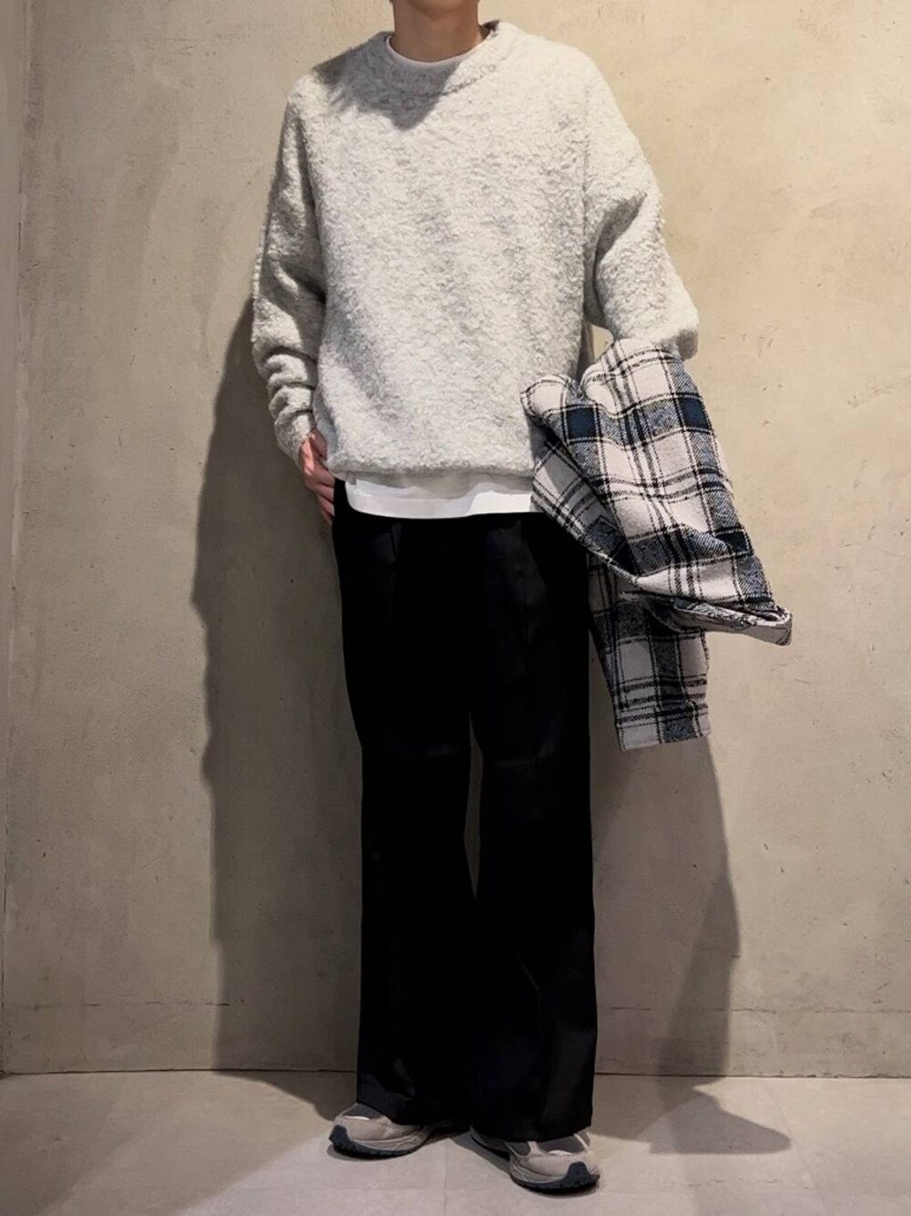 25a99(RAGEBLUE mozo ワンダーシティ)のスラックス「起毛PEツイル/センタープレスワイドストレートイージースラックス」を使ったコーディネート