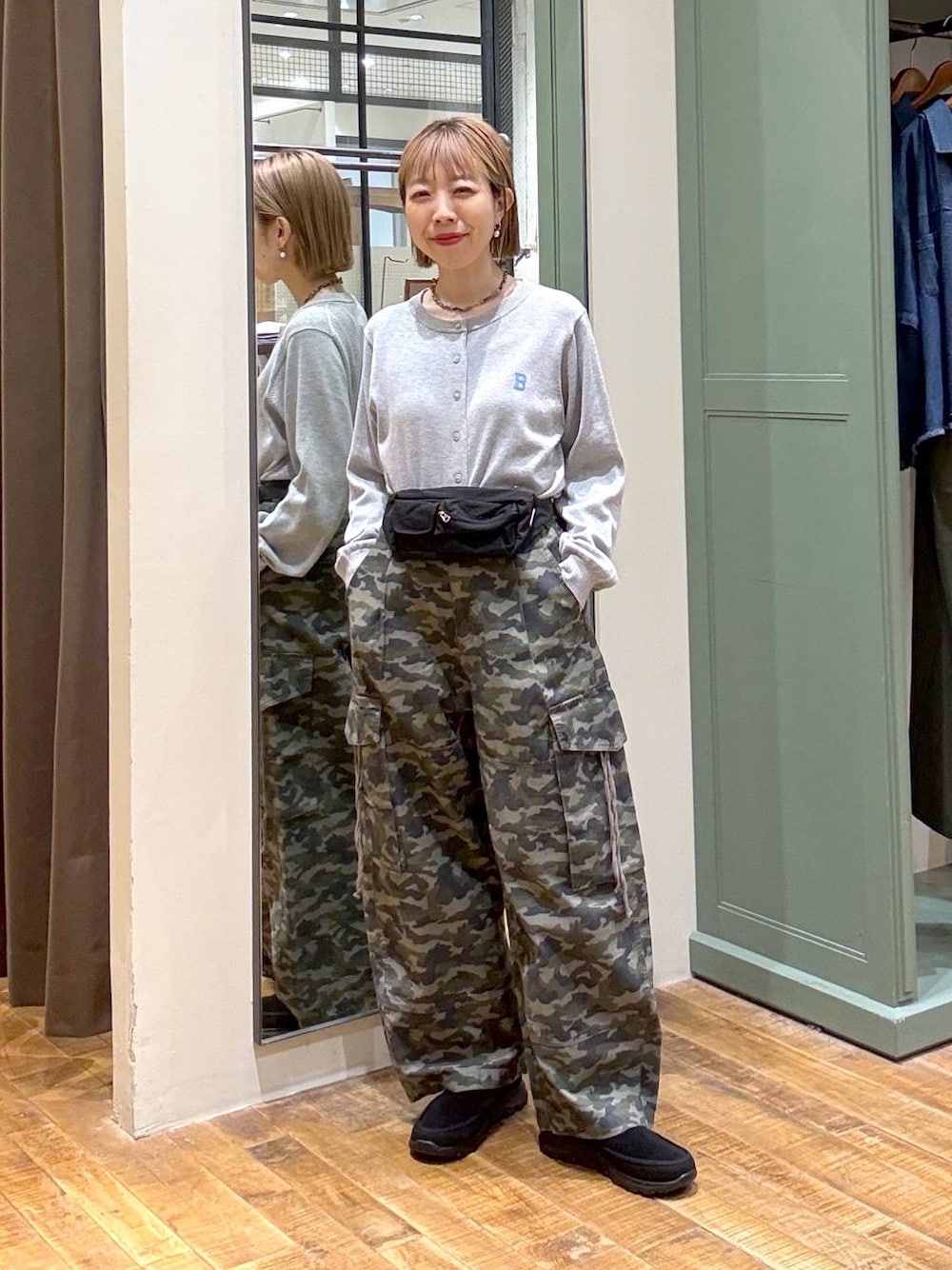 シンプルカーディガンとカモフラパンツのカジュアル合わせ🦖 ウエストポーチが今っぽい🖤 最後までご覧いただきありがとうございます! 少しでもコーデの参考になれば嬉しいです♡ 《aimi Instagram》☞ インスタ更新してます 日常のあれこれ載せてまーす!