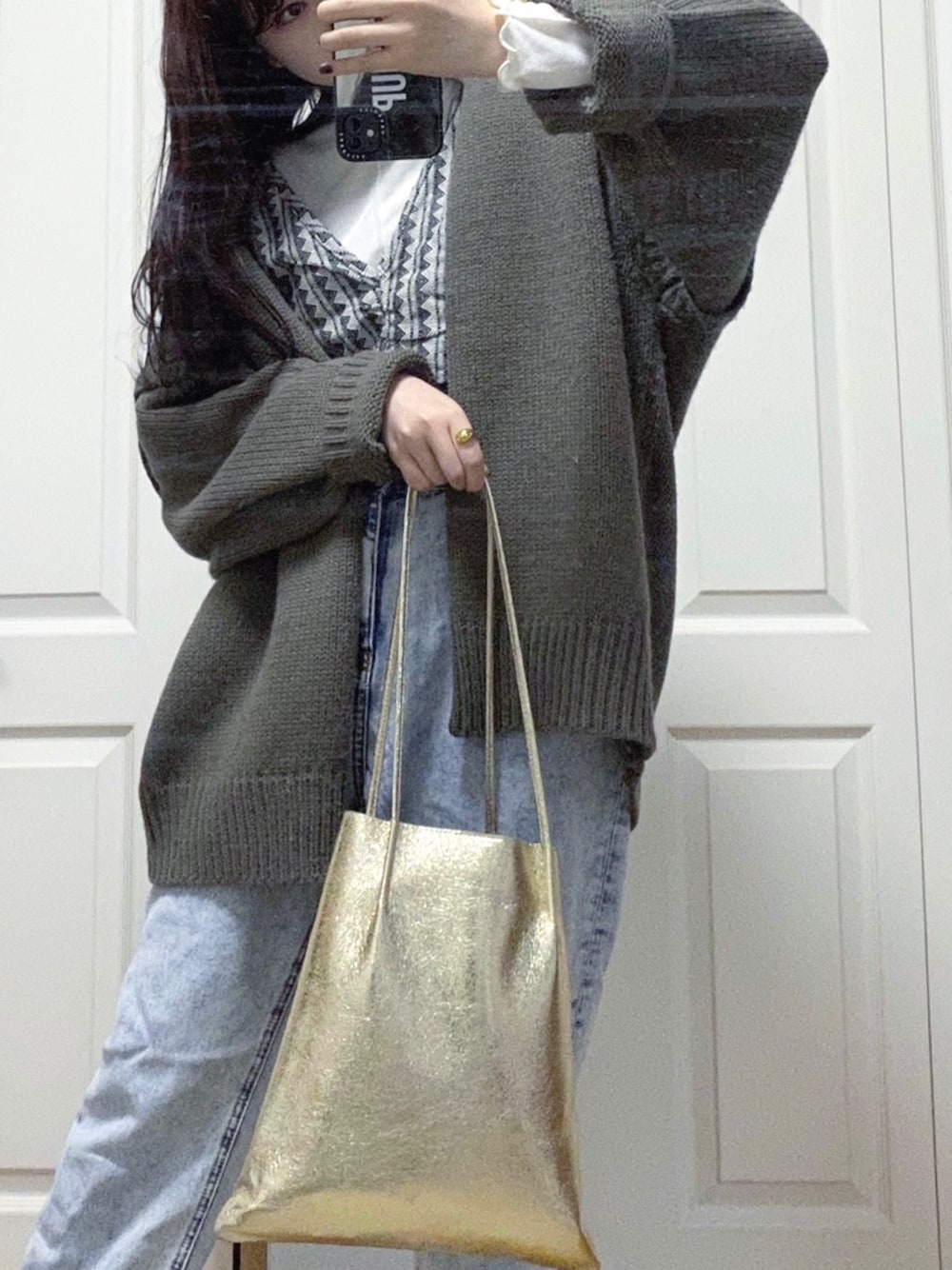 お散歩コーデ👟 ◎カーディガンを前掛けにしてビスチェをチラ見 せ ◎メロウネックトップスはキラキラした素材感でとってもお上品です🌷 →薄手なのでパーカーやトレーナー合わせで中に着ても暖かく着ていただけます✨ ◎落ち着いたお色味に小物で少し彩を加えてみました お日様が気持ち良いこの季節☀️ „ちょっぴりおめかししてお散歩したくなる“ そんなコーディネイトをお披露目してみました🐩 いつもコーディネイを見てくださりありがとうございます♡ イイね・お気に入りとっても嬉しいです🌟