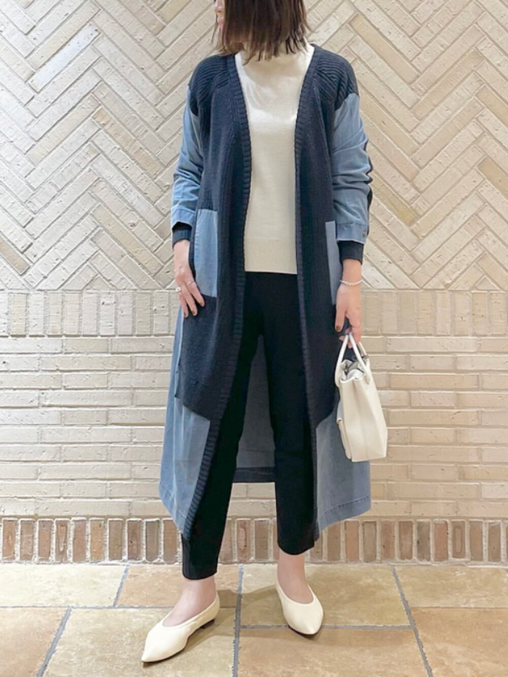 ranran(RIVE DROITE 恵比寿アトレ)のカーディガン/ボレロ「ニット×デニムロングカーディガン」を使ったコーディネート