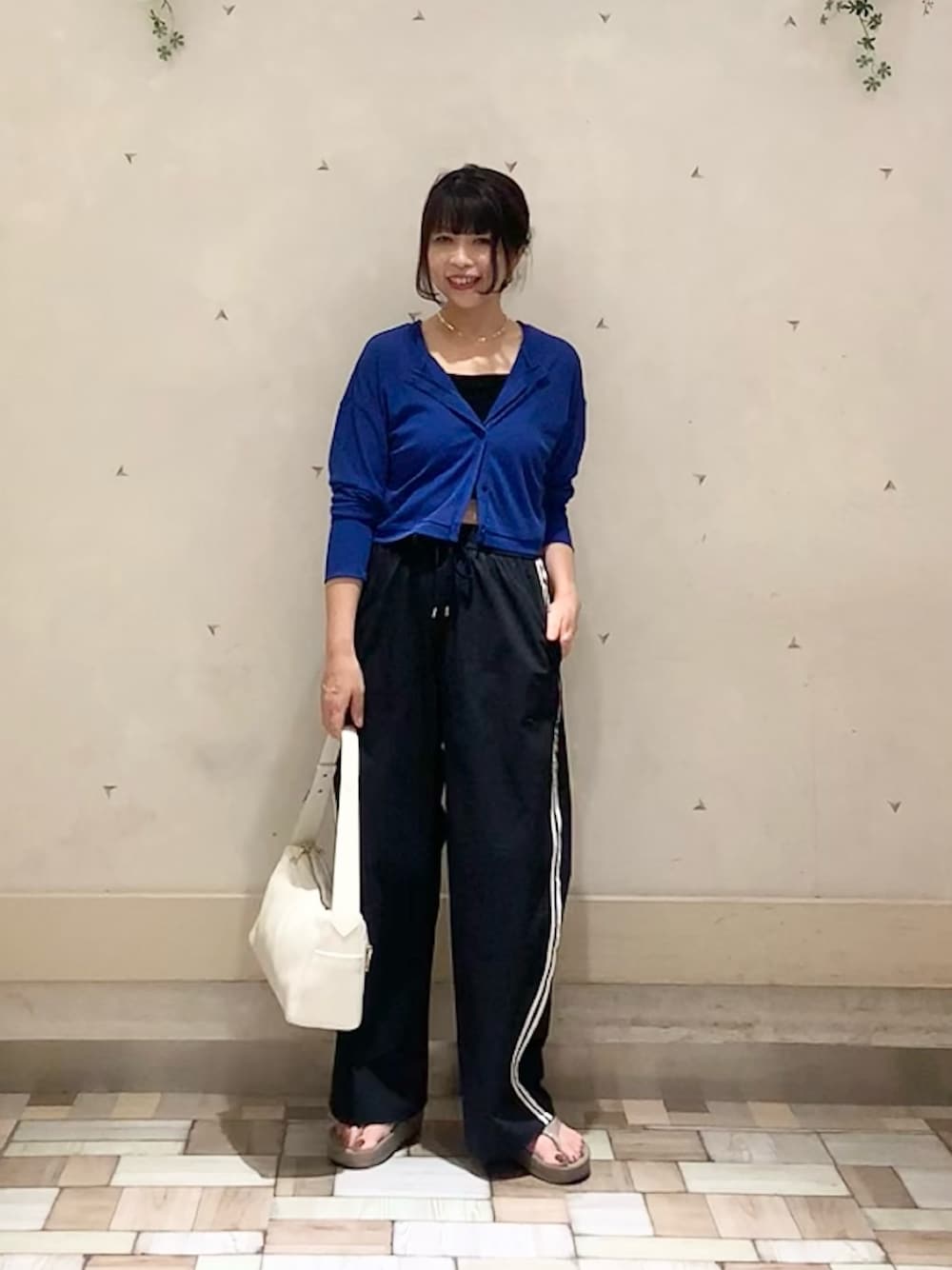 スポーティなパンツをショートカーディガンのバランスでカジュアルにコーディネートしました。 パンツは撥水加工付きの素材で雨やレジャーにもピッタリなパンツです。 カーディガン/フリーサイズ パンツ/38サイズ着用