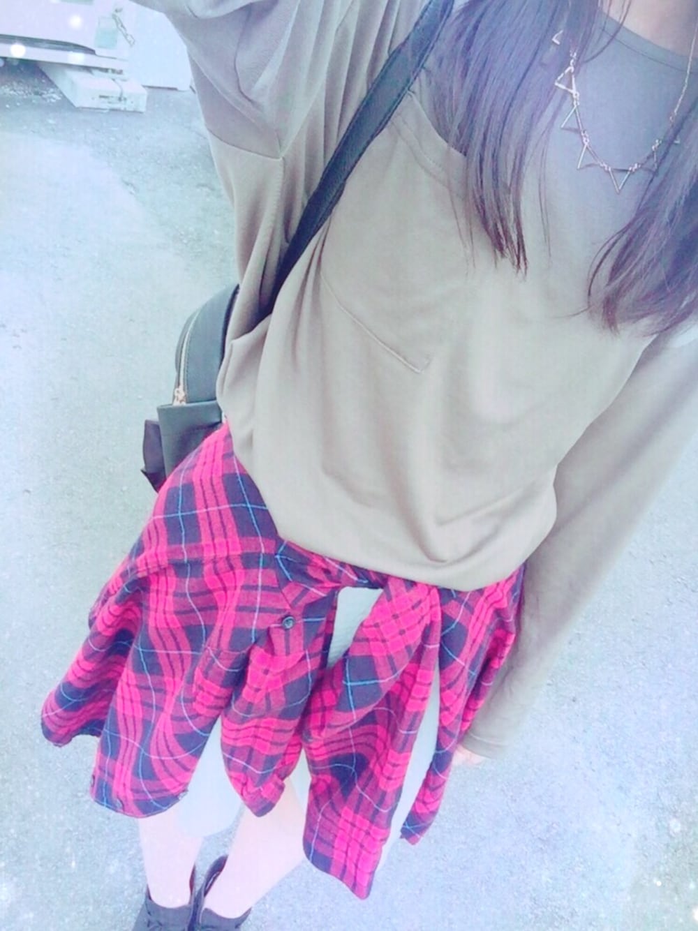 この前水族館に行った時の服です🐠🐬🚢 1番は、カーキーと赤系チェックで秋っぽく👍 スカートはH&Mで安くなっているのを見つけたので500円くらいでした👀 フレアで、丈も長すぎず短すぎずいい感じです✨ 靴は歩きやすいようにハイカットのスニーカーにして、色は服やカバンとのバランスを考えてブラックに✔ (どこのかわかりませんでした🌀 これから秋、どんなコーディネートをしようか考えるのがすごく楽しみです💭