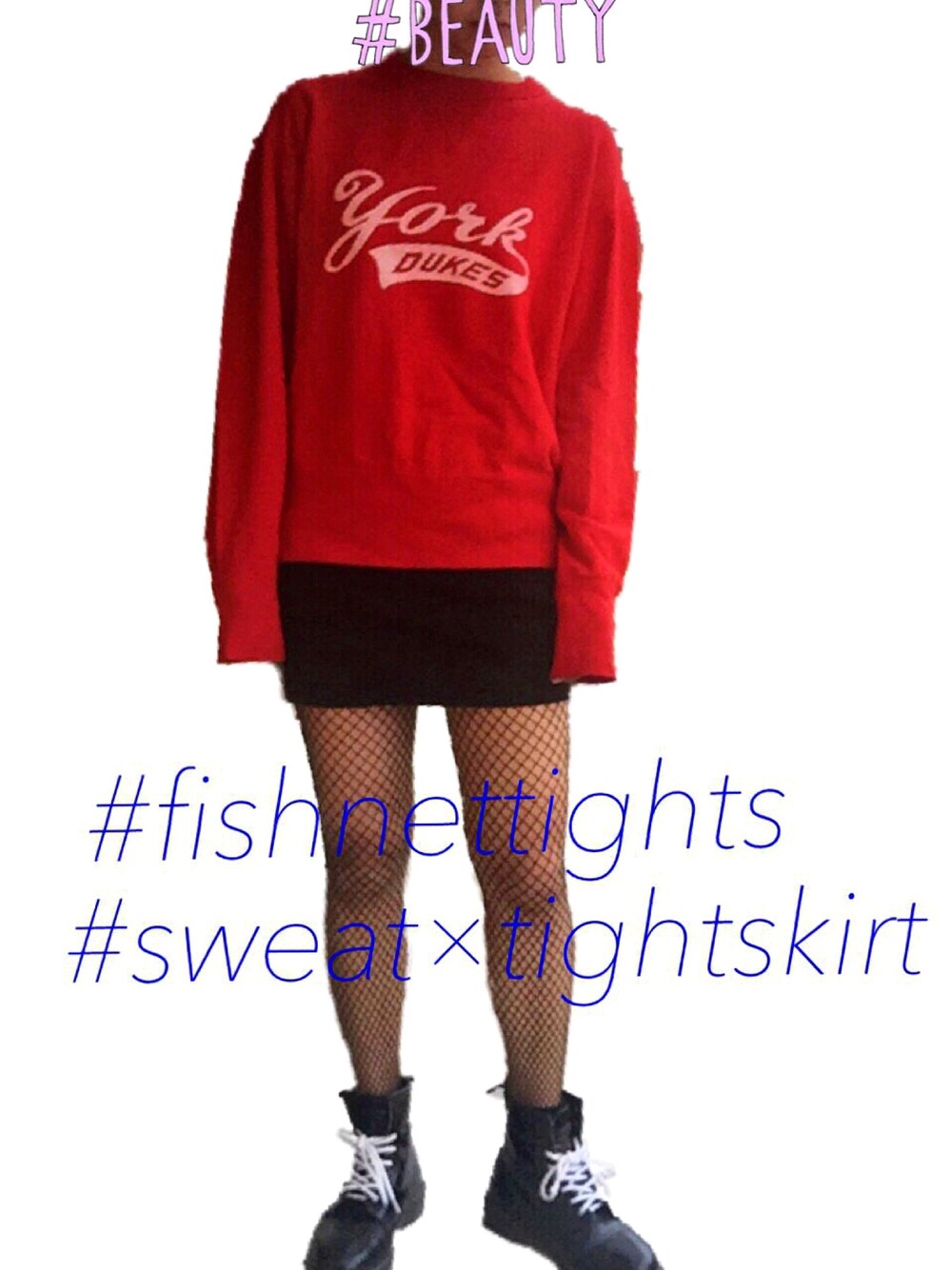 赤のスウェットは古着屋さんで買いました!おそらくノーブランドだとおもいます。でも袖が長めに作られててかわいいです💕