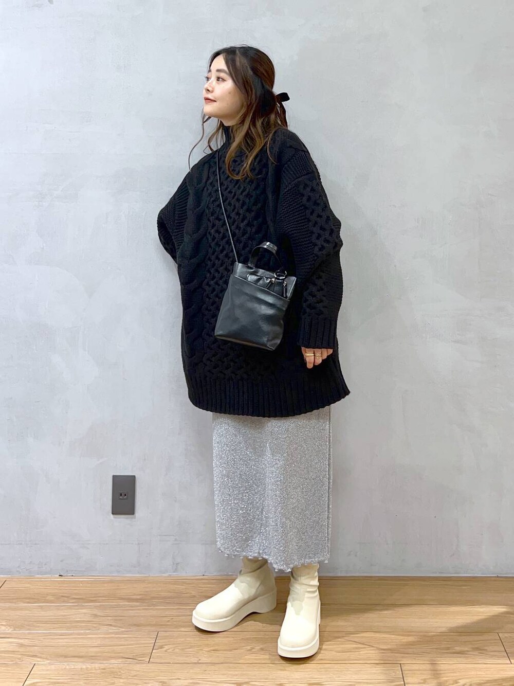 【スタッフプロデュースアイテム】 一枚で着映えするケーブルニット! ウール15%も入っているので保温性も◎ 大きめなシルエットになっているので 細身のスカートやパンツ、トレンドのチュールスカートを合わせるのもおすすめです!