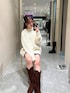 冬に着たい白ニットコーデ ウエスタンブーツは 素材がスエードでとっても可愛いんです♡