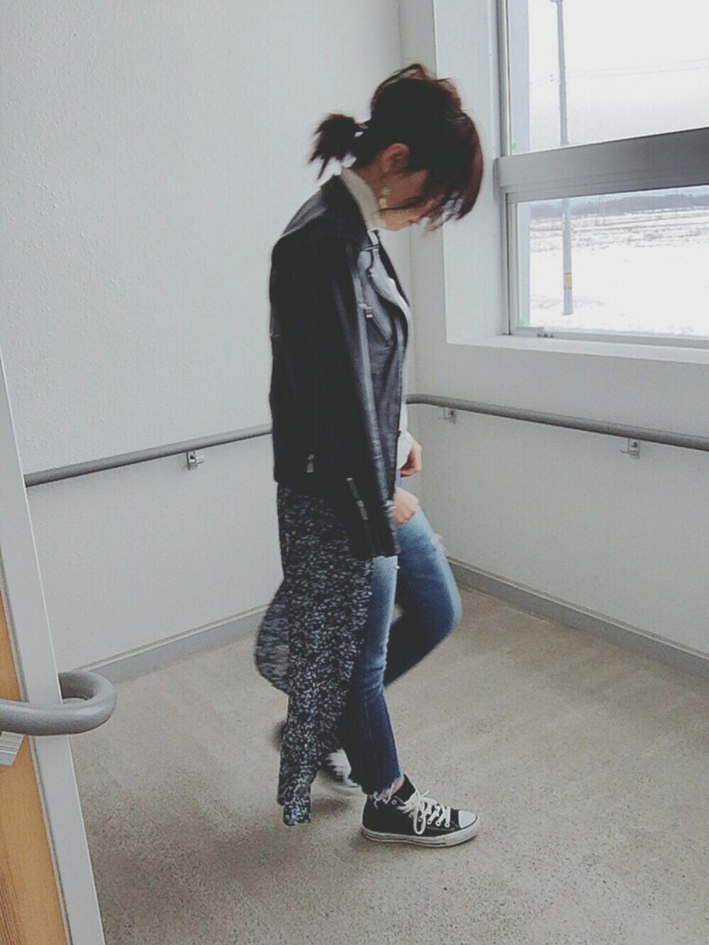 ungrid 響子さんがしてたコーデが 可愛かったので久しぶりに シフォンロングガウン 引っ張り出してみました🙈💕 まだ寒いので、中にニット🙌 ライダースは、ブランドわからないけど 本革でお気に入り。