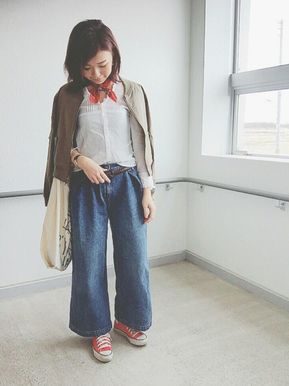 e.mのデニムパンツ「【Casual】リメイクタックワイドデニム」を使ったコーディネート