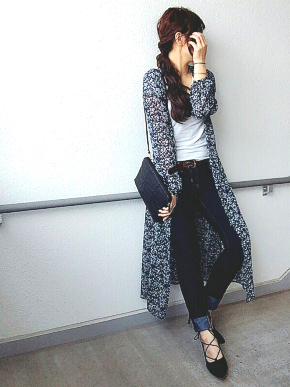 参観日コーデ。 娘の参観日でした🙌 シンプル。 去年色違いでGETしていた シフォンロングガウン?? 今年もお世話になります❤️