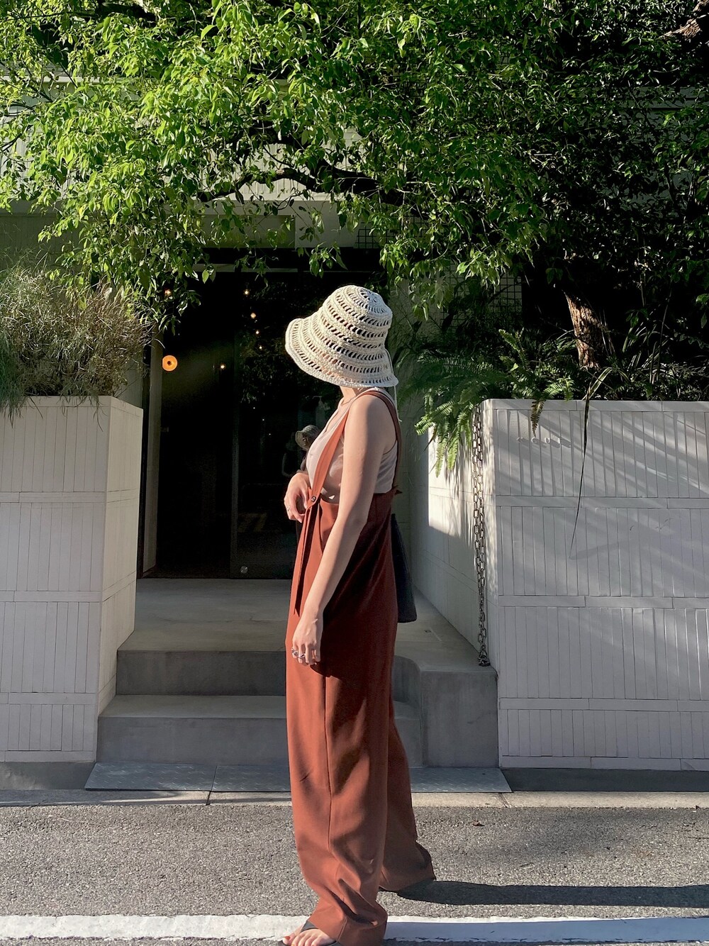 カフェ前で📸 新しく買った帽子が可愛い💚