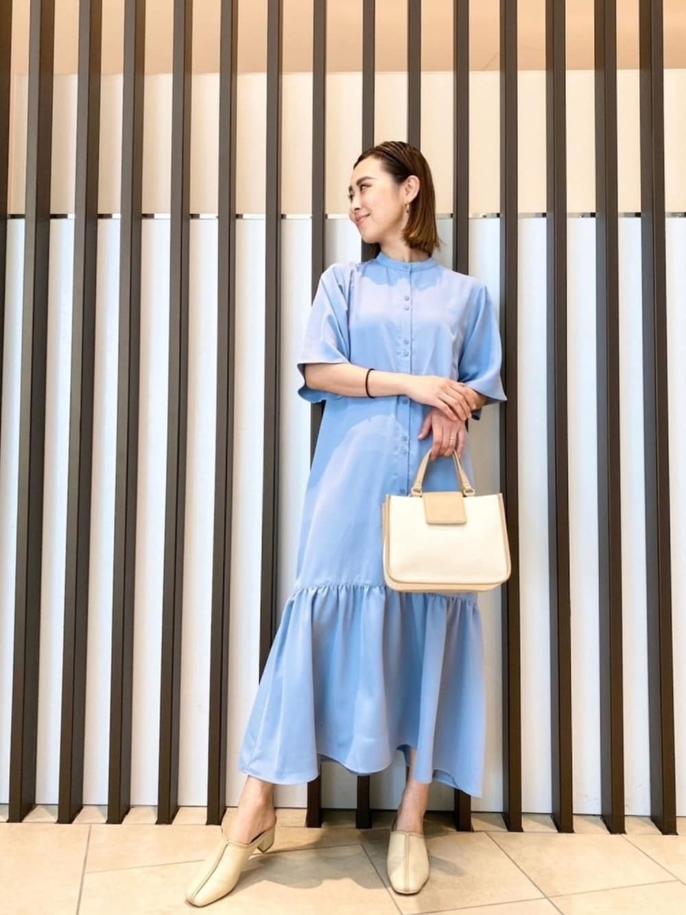 新作のワンピース♡ 裾元がティアードデザインで、動くと揺れがとても綺麗なワンピース。 さらっと一枚で着ても華やかな印象に。 今季おすすめなのは、涼しげはこちらのブルー。