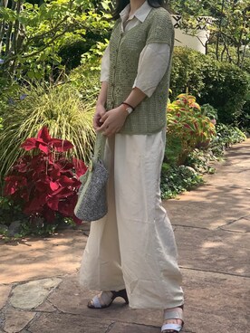 手作りニットアイテムを中心にコーディネートを組んでいます🧶