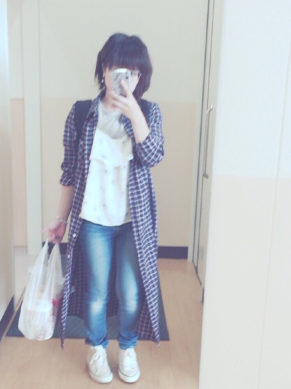 お買い物の合間に、、 ロングシャツお気に入りです。