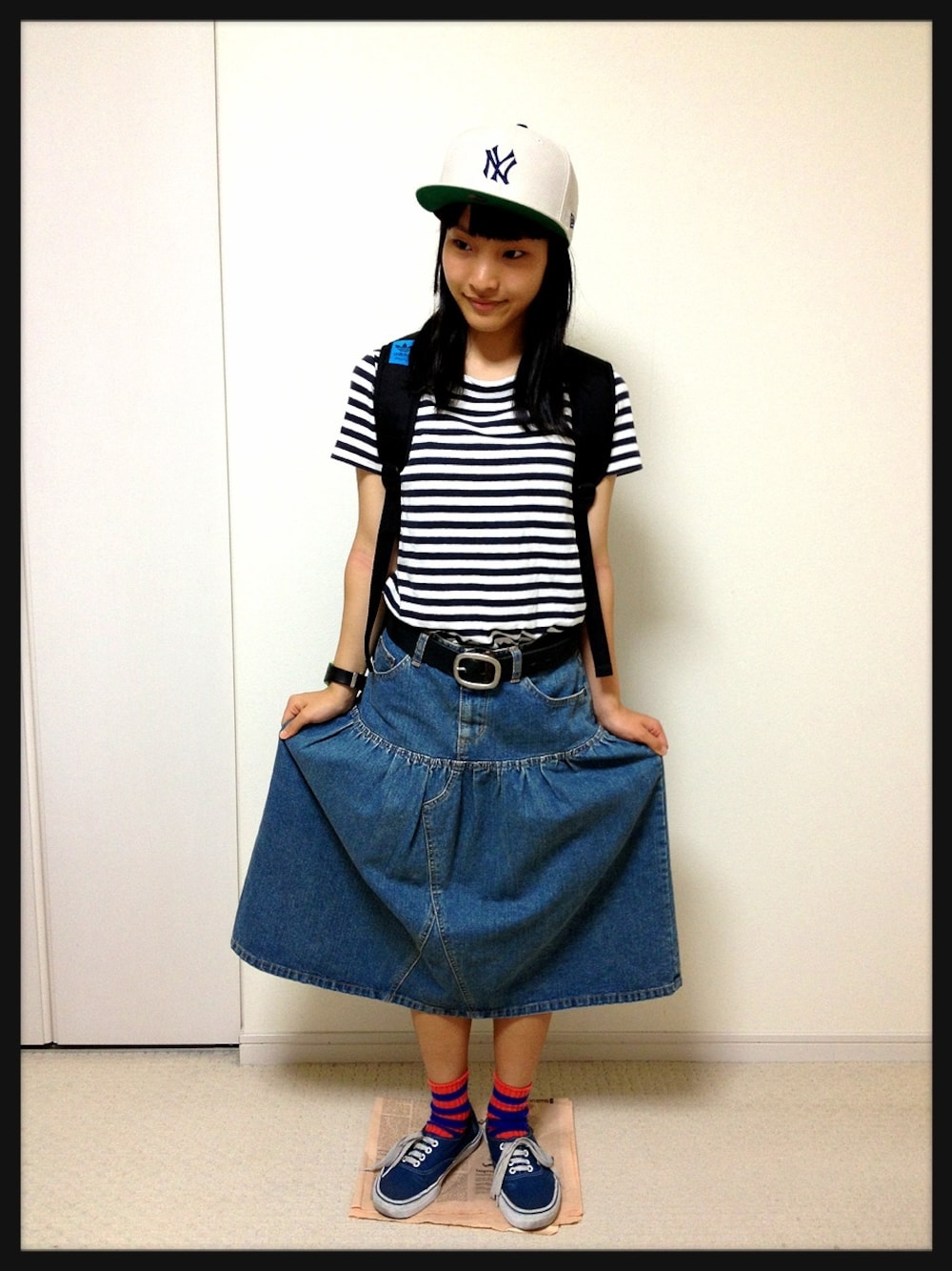 キャップ BEAMS BOY ボーダーT 無印良品 スカート BEAMS BOY ソックス 靴下屋 スニーカー VANS リュック adidas originals 日本次こそは(((o(*゚▽゚*)o)))
