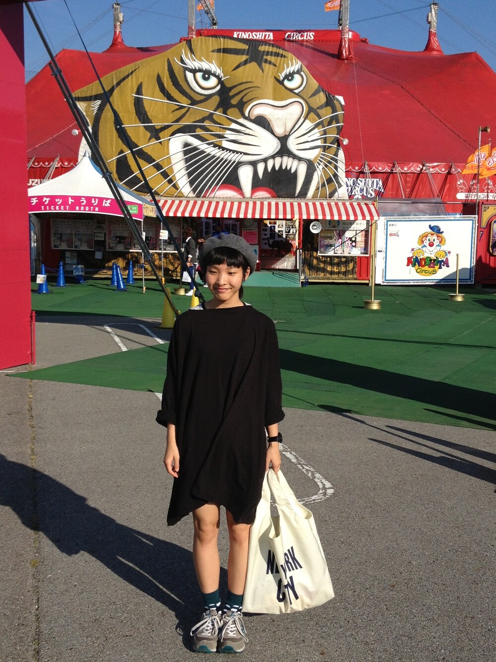 ロングカーディガン JOURNAL STANDARD LUXE スニーカー new balance 574 トートバッグ BEAMS BOY 腕時計 G-SHOCK ベレー帽 BEAMS BOY 三田アウトレットに行ってきました:) なんか近くで木下大サーカスやってておもわず📷 テントすっごくかわいかったです^_^