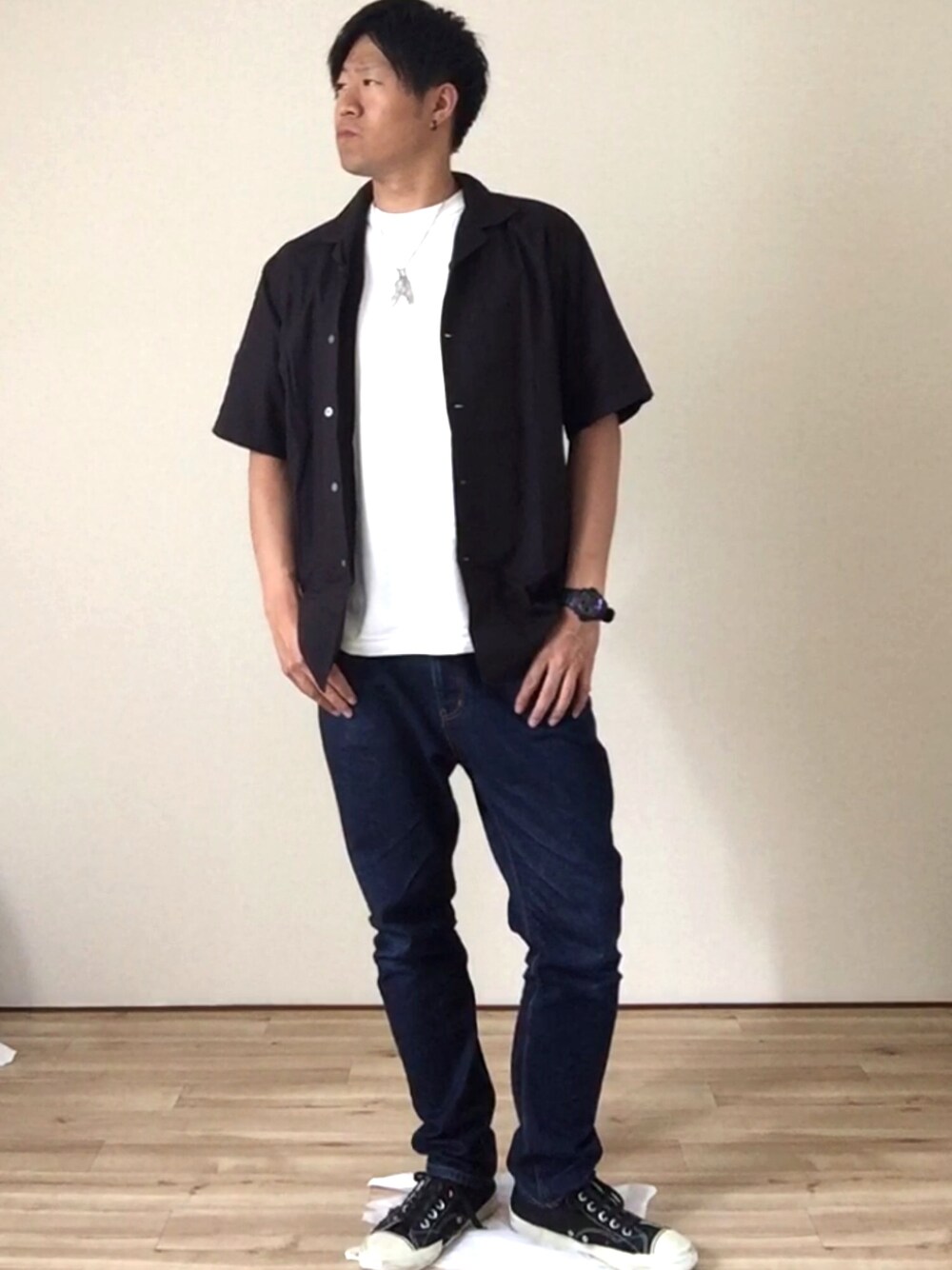 皆さんこんにちは^ ^ いつもご覧頂きイイねやお気に入りやフォローありがとうございます😊 今日は暑いですね💦 熱中症や脱水症には気をつけましょう。 水分と塩分補給が大切です。 今回は綺麗めストリートコーデになります! トップスはUNIQLO UのオープンカラーシャツにインナーはUNIQLO UのTシャツを着用していて、パンツはエクストララージのテーパードデニムを履き、足元はプロケッズのハイカットスニーカーを履いています。
