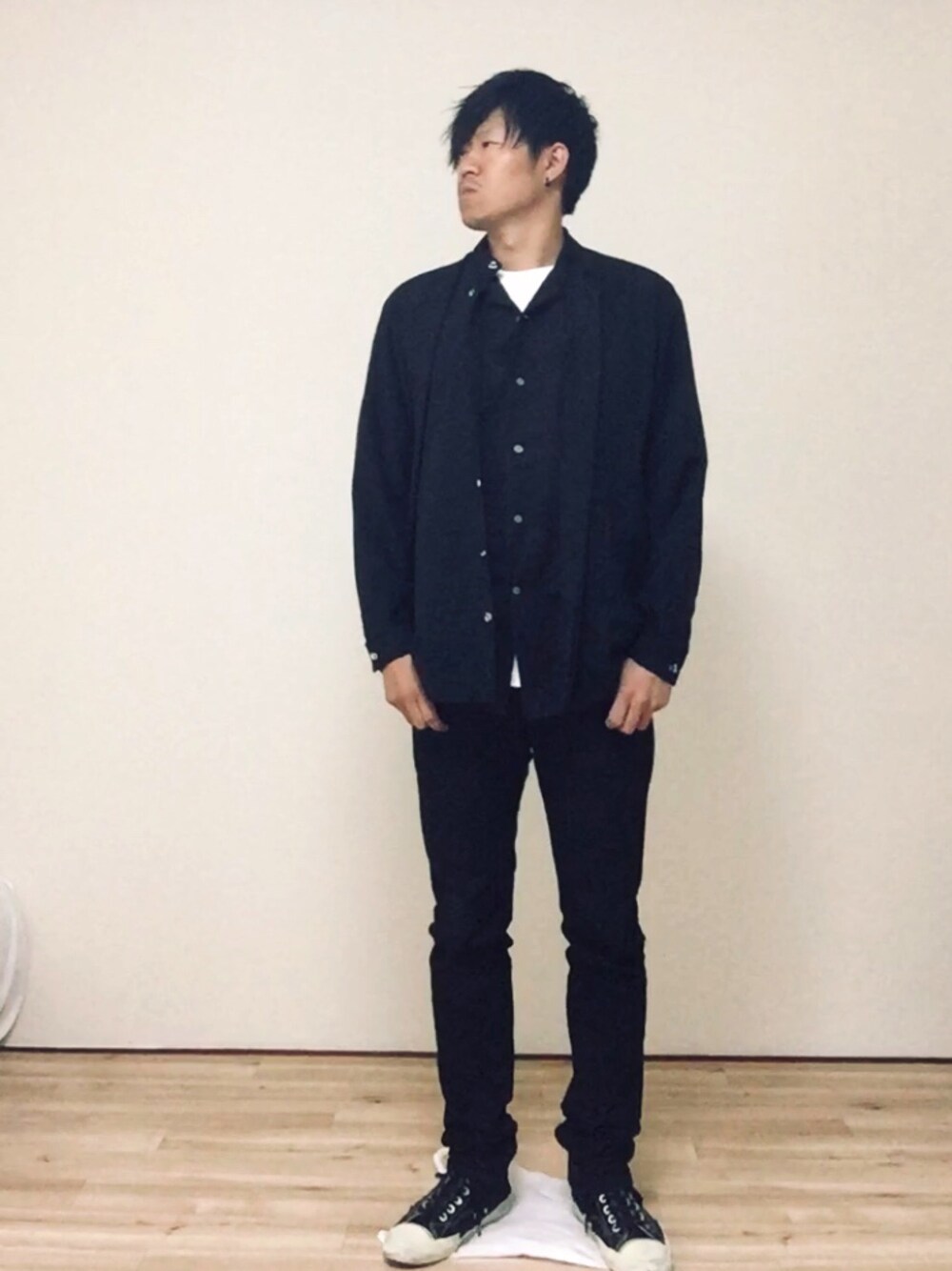 皆さんおはようございます^ ^ いつもご覧頂きイイネやお気に入りやフォローありがとうございます☺️ 最近、天候がはっきりしませんね。 寒暖の差があり体調壊してませんか? 私は少し頭が重いです。 今日はこれからクラシックを聴きに行きます♪ 正直、何を着て行っていいか分かりませんが、無難なブラックコーデで行こうと思います。 アウターとして古着屋で買ったアンティークのシャツにインナーはUNIQLOUのオープンカラーシャツを着用し初シャツONシャツ👔をし、その下にはUNIQLOUのTシャツを着用しています。パンツはGUのブラックスキニーを履き、足元はプロケッズのハイカットスニーカーを履きました☆