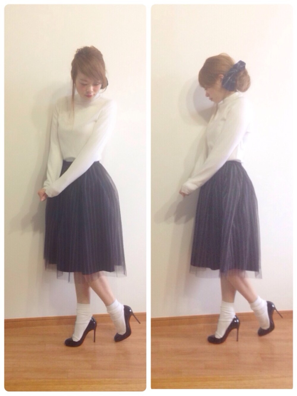 みて頂きありがとうございます★ ホントはネイビー×赤のストライプ柄チュールスカートですが。。見えずらくてすいません。。