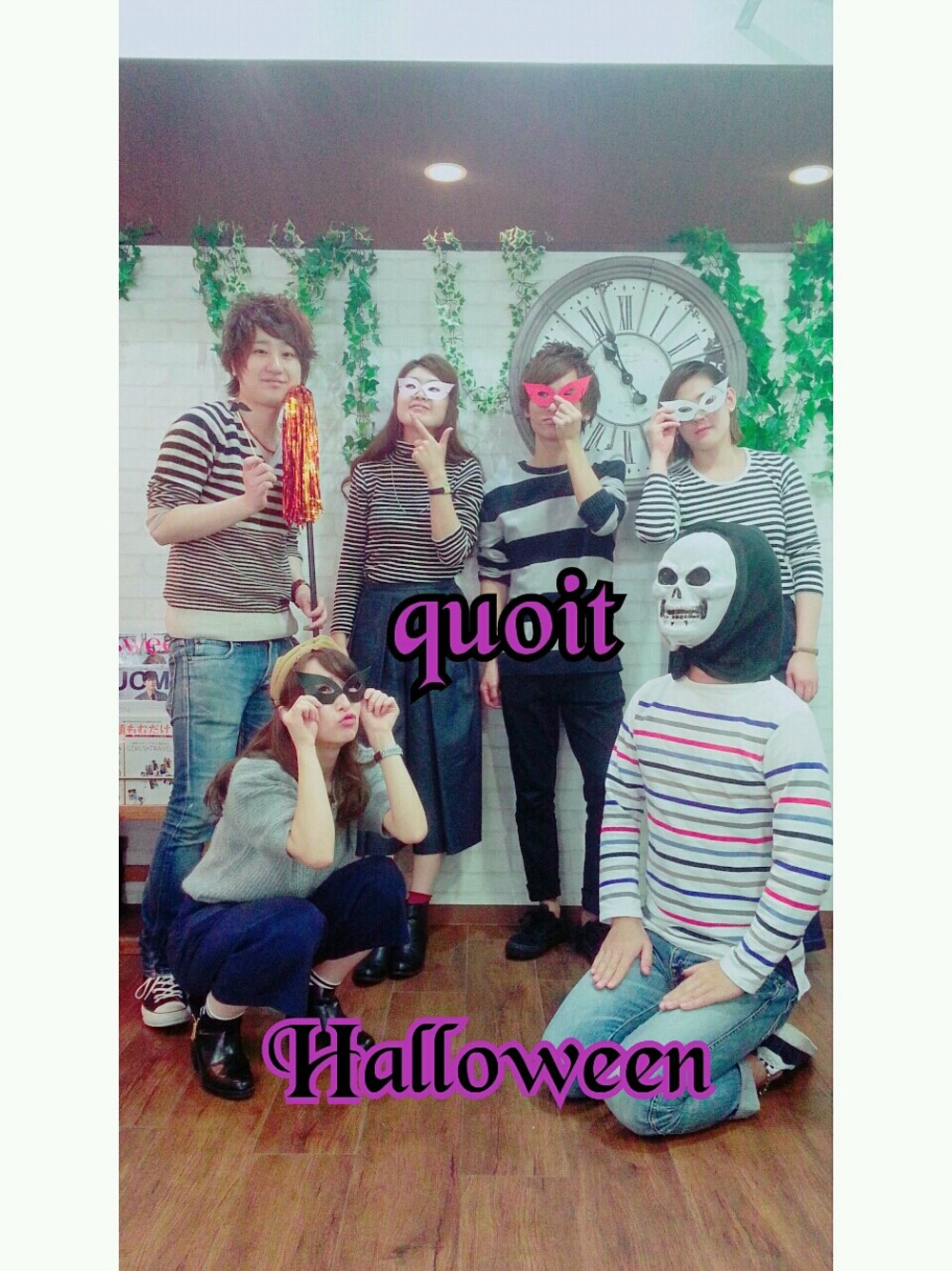 スタッフ写真です! みんなでボーダーコーデ♪ ハロウィン仕様です。 営業前にパシャリ(*^^*)