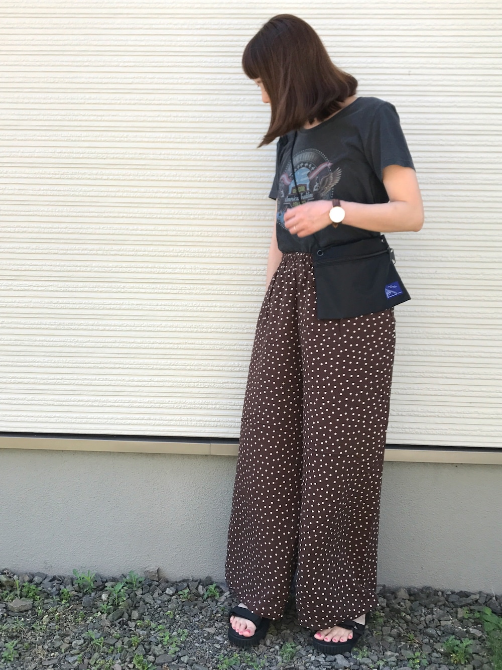 こんにちは😃 セールでゲットしたドット柄パンツ💕 ロックTを合わせてみたけど、無地の方が良かったかな? まだまだ暑いけど、色だけでも秋っぽく。 いつもありがとうございます😊 インスタ ikunao0711