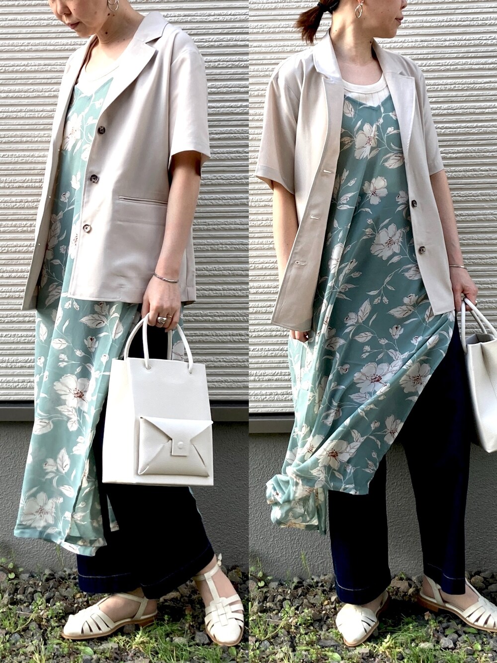 こんばんは♪ 暖かくなってきて嬉しい😆 melirichさんのペインティングレトロフラワーキャミワンピースのグリーンを着てみました⭐️ タンクトップだとまだ寒いので、半袖ジャケットを羽織ってみました😆 見ていただきありがとうございます☺︎ インスタ☺︎ ikunao0711