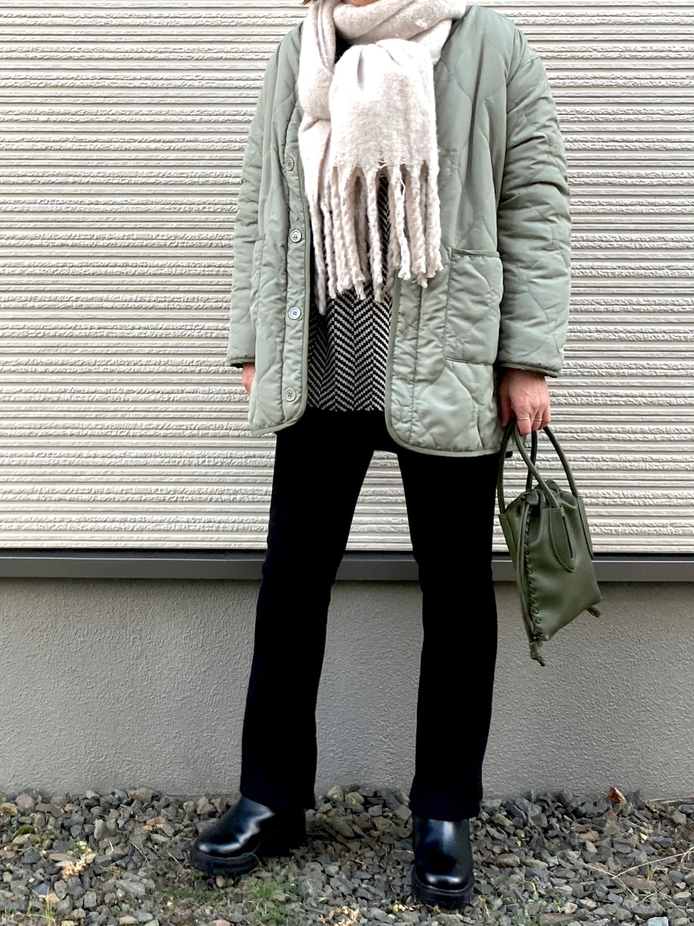 IKUmamaのマフラー「フワフワバルキー太フリンジビッグマフラー」を使ったコーディネート