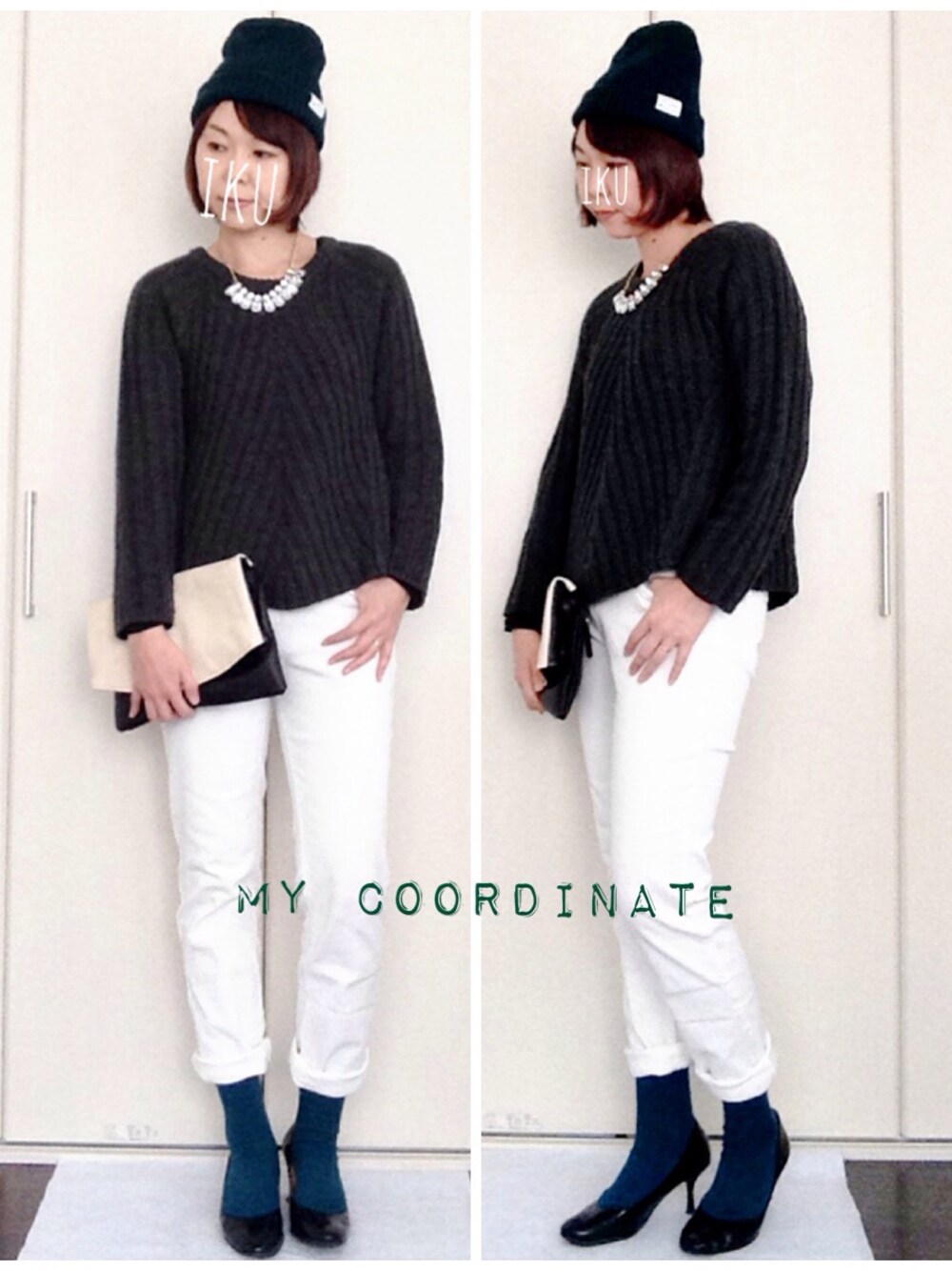 IKUmamaのニットキャップ/ビーニー「リブニットワッチAW 552615」を使ったコーディネート