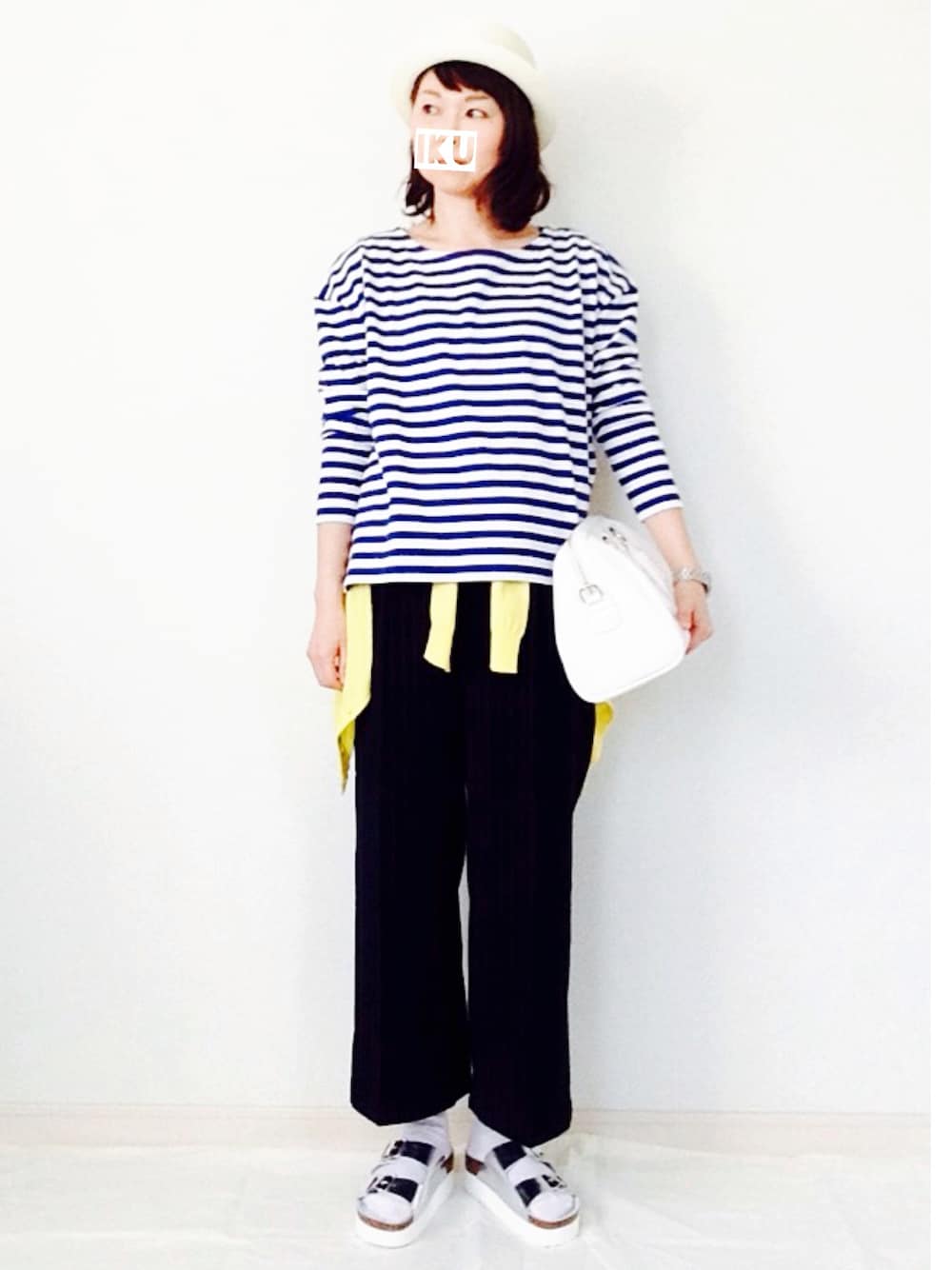 IKUmamaのTシャツ/カットソー「DOORS 空紡ボーダードロップショルダープルオーバー」を使ったコーディネート