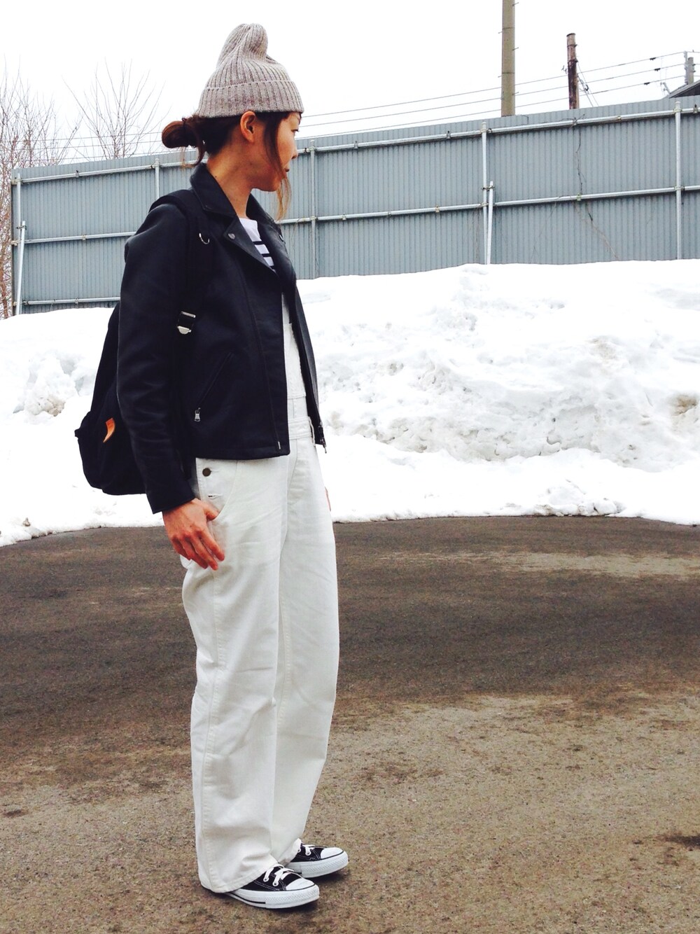 なんてことない休日コーデ。 ようやくライダースで出歩けるくらい、暖かくなりました! トレンチはもうすぐ着れるかな? 眠い〜〜🙈🙈🙈