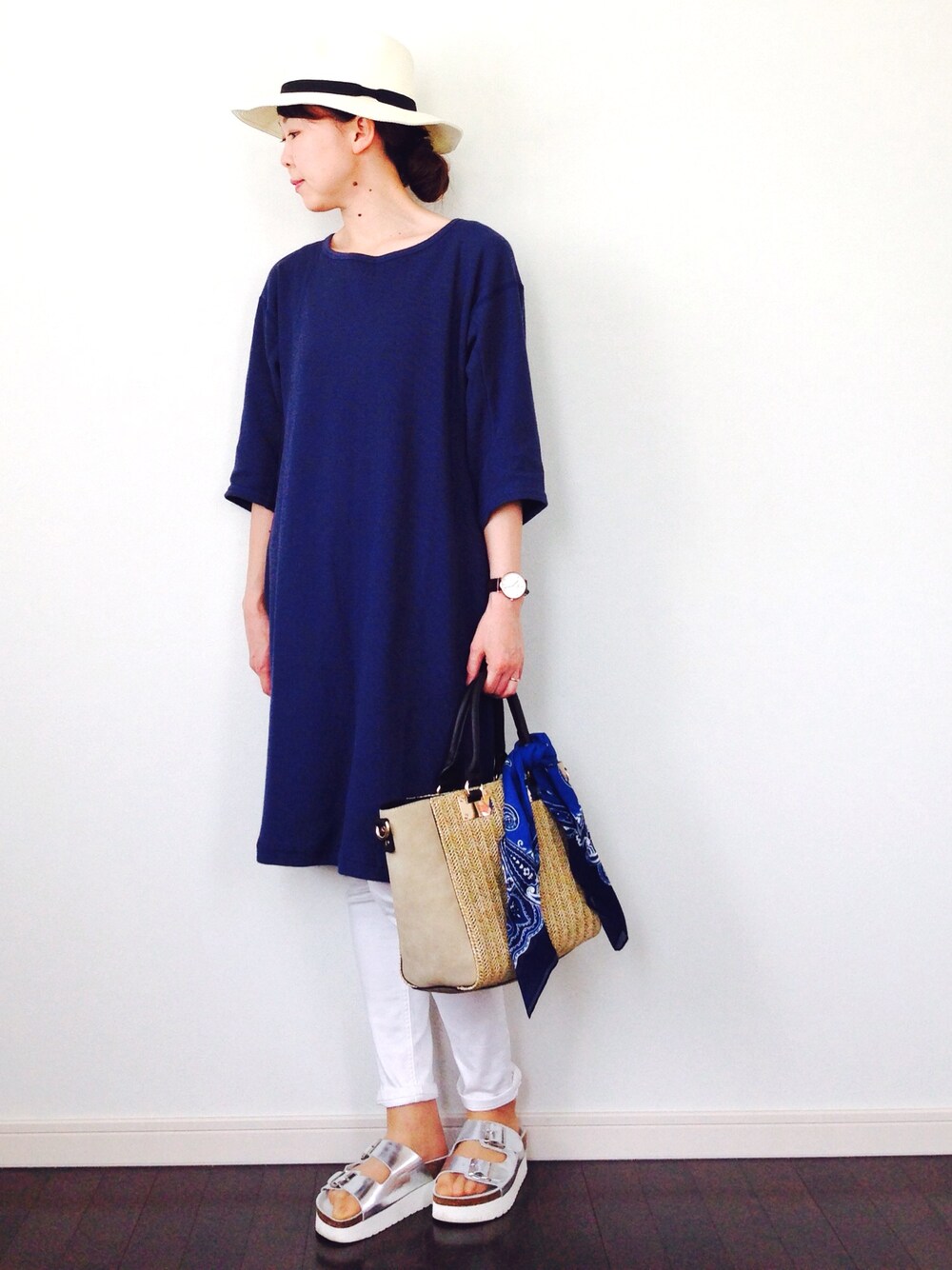 初夏のリラックススタイル☀️ ネイビー、ブルー×ホワイトで爽やかに。 ブルーは大好きな色。 夏はいっぱい着たい✨ シルバーをポイントに!! いつもありがとうございます❤️