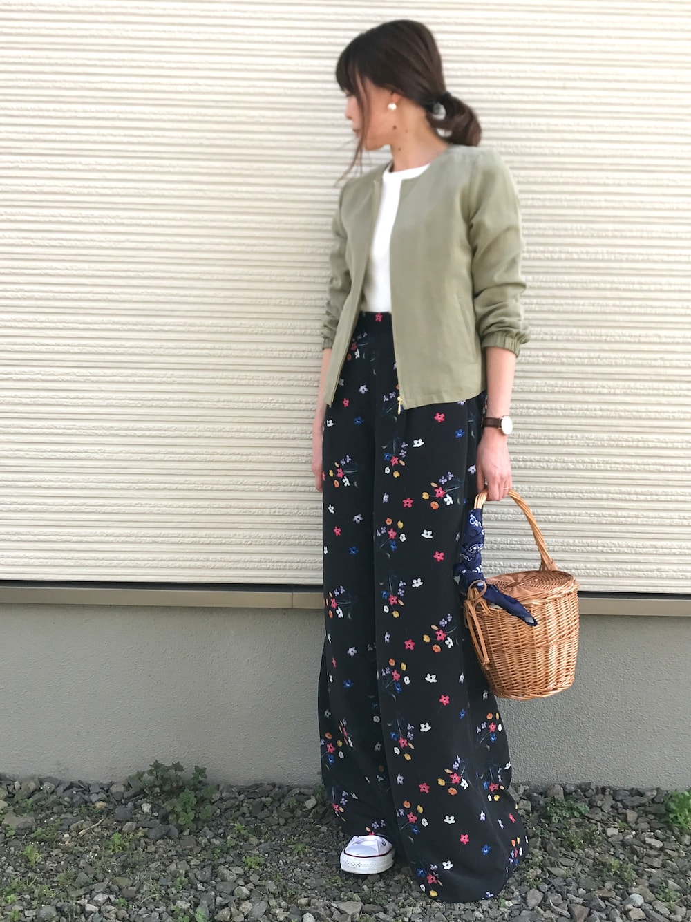 こんにちは😃 雨降ってきた☔️ ブラックの花柄パンツを大人カジュアルで。 ちょっと丈が長め😂 サラサラしてて履き心地が良いです!! いつもありがとうございます😊 インスタ 本日更新してます(๑˃̵ᴗ˂̵) プロフィールから飛べます!