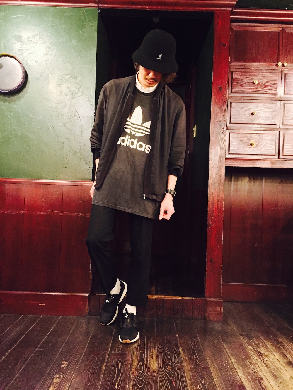 ワントーンコーデ。真っ黒ですみません。。 これで営業はちょっと気まずかったっす。笑