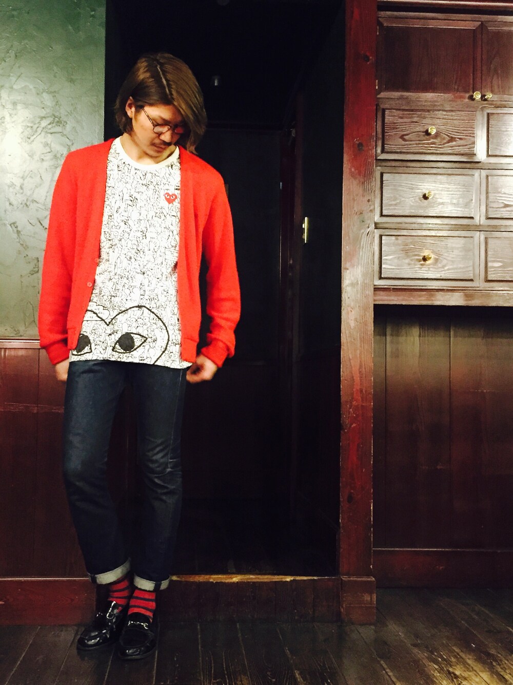 真っ赤のカーディガンシンプルコーデ^ ^ まだ寒い日が続いてるのでこの格好じゃまだ 外出れないですね、、T_T 早く春っぽい天気にならないかなーm(__)m