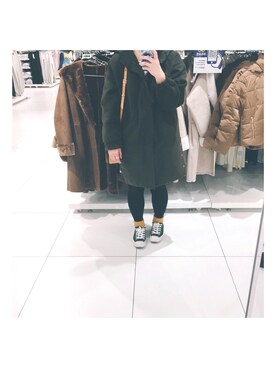 「P.Hのアイテム(スニーカー、グリーン系)」を使った、Hiyoriさん(レディース・155cm)の冬コーディネート