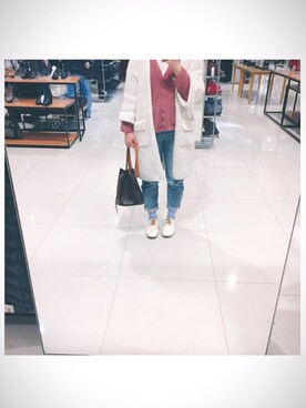 「koowのアイテム(その他シューズ、ホワイト系)」を使った、Hiyoriさん(レディース・155cm)の冬コーディネート