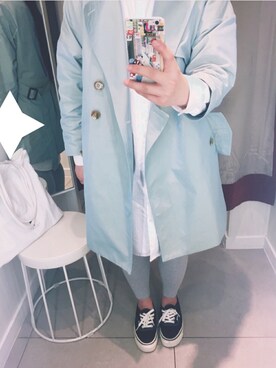 「i.CYのアイテム(トレンチコート、ブルー系)」を使った、Hiyoriさん(レディース・155cm)の春コーディネート