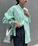 ほっぺちゃんのシャツ/ブラウス「コットンライクバンドカラー袖ボリュームストライプシャツ」を使ったコーディネート