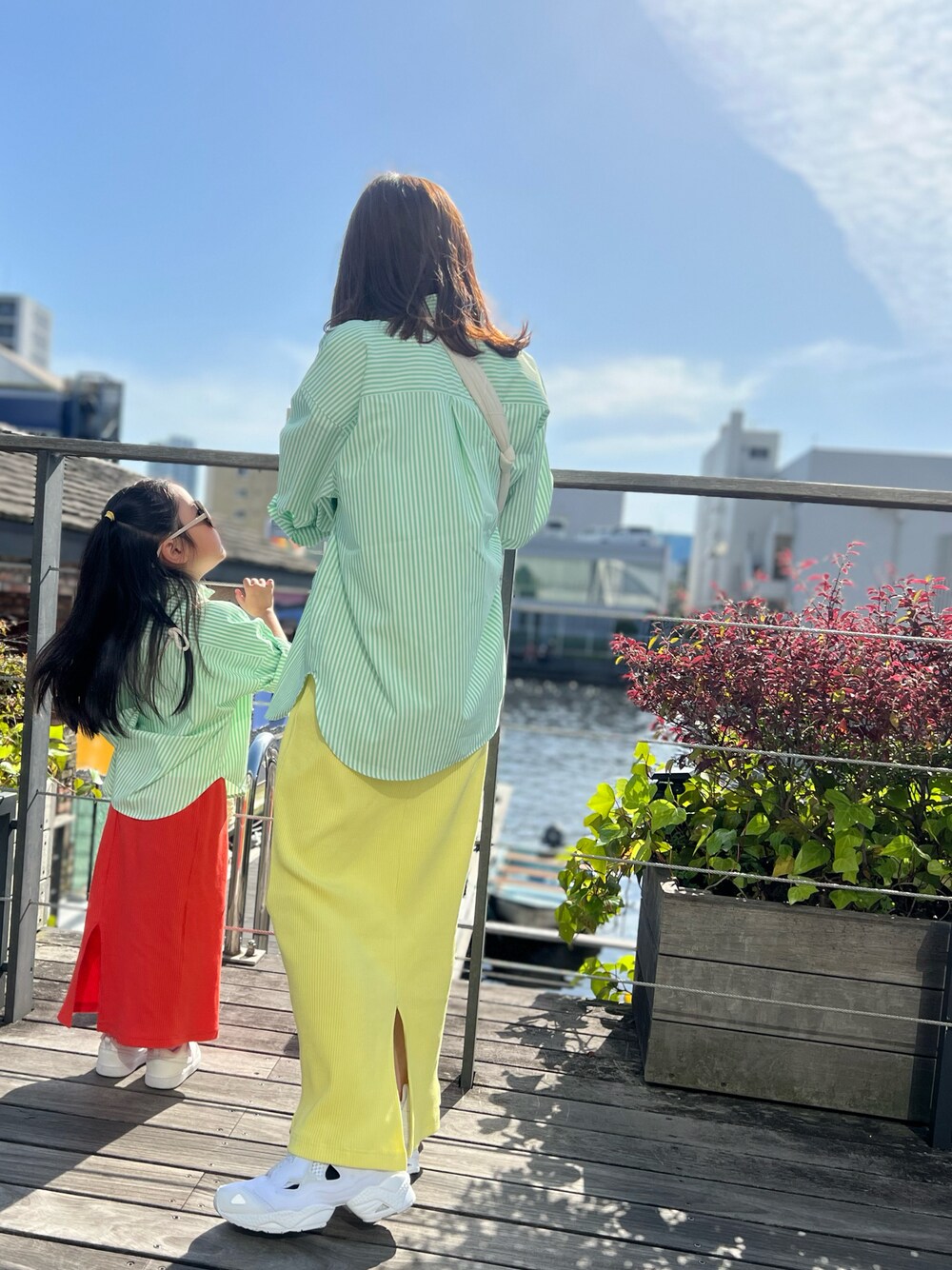 リンクコーデ💚 CIAOPANIC TYPYコーデの日👧👩 色味が春らしくスカートは 自転車🚲も乗りやすい優れもの‼️ オススメです♡